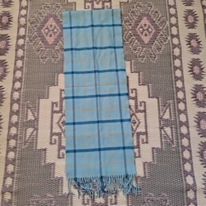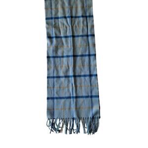 100% Cashmere Made in Scotland Blue & Yellow Plaid Rectangular Scarf w Fringes