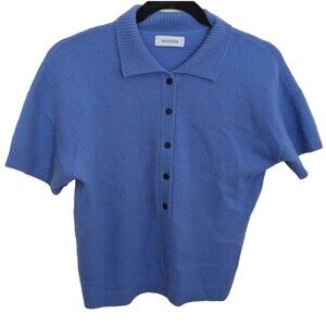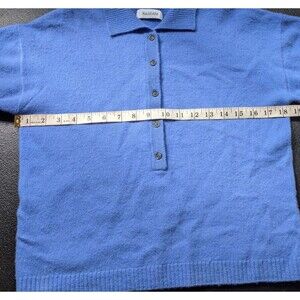 Super soft periwinkle blue polo top with short sleeves. Button-up front. Classic collar design. Gorgeous and so cozy — but its not quite my color so I havent been reaching for it. Since I purchased, worn once and professionally dry cleaned. Some light pilling throughout.