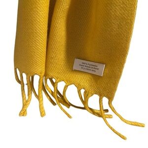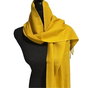 Introducing the 100% Pure Cashmere Scarf from Nepal. This luxurious scarf, crafted by skilled artisans in Kathmandu, features a traditional twill weave design and is finished with elegant Burberry-style fringes in a vibrant yellow mustard color. This scarf offers warmth, comfort, sophistication, and timeless style, perfect for winter & cool weather.