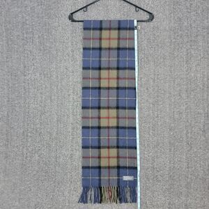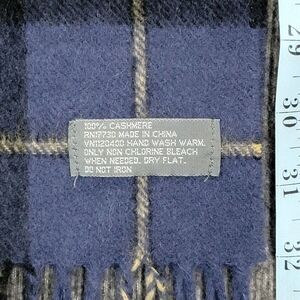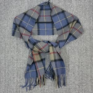 100% Cashmere Plaid Scarf Mens Womens Unisex Blue Gray Fringed Preppy 64x10.