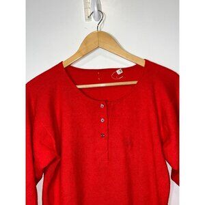 100% Cashmere Red 3/4 Sleeve Henley Sweater Soft Knit Button Placket Size 38