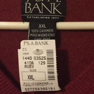 Jos A Bank 100% Cashmere sweater. Never worn. Ruby color, V Neck style.