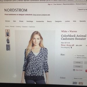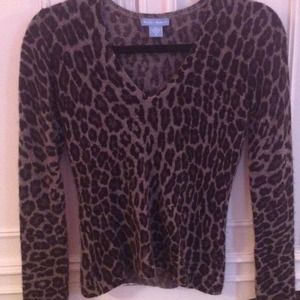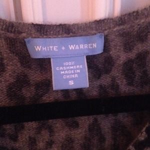 A small White + Warren grey/black v-neck leopard print sweater that is 100% cashmere. Worn a few times but in perfect condition; when washed it was dry-cleaned to keep it's condition! These sweaters retail at Nordstrom for $150+ even when on sale! (The last photo is not the exact sweater, it's just to prove the reliability of the brand)