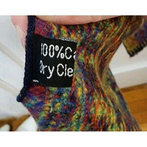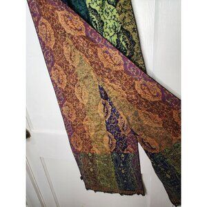 100% Cashmere Winter Scarf Blue Green Multicolor Fringe Reversible Soft