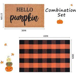 Enhance your home's style and functionality with our ideal decor set; It includes a 100% coco coir welcome mat and orange black plaid outdoor rug, perfect for upgrading your front porch; Elevate your fall front porch with these versatile door mats