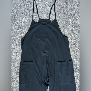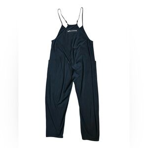 Cool and comfy 100% cotton basic black onesie jumper. Drop crotch designed to be loose fitting. This piece is labeled a medium but I would say it would be a better loose fit on a XS-Petite small. Please check measurements.