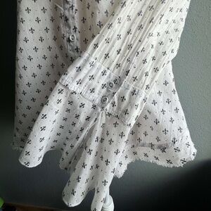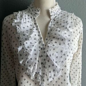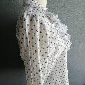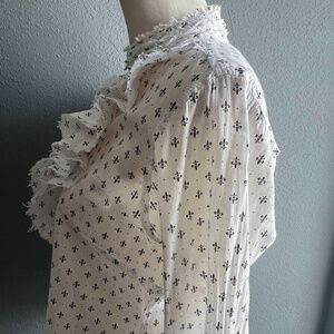 When you want your Boho / Romantics aesthetic to transfer over to more formal, this does it! A lower cut neckline, overall fringe, looser cuffs and ruffle collar, all in a lightweight cotton, make this a romantic, boho style that you can actually dress up for work! Has darts in front & back for a fit & flare cut. Covered buttons.