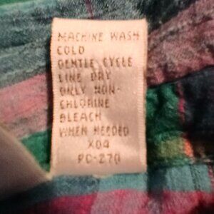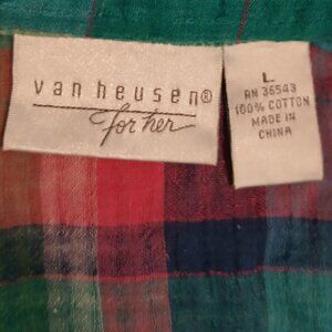 Van Heusen for Her 100% Cotton Gauzy, Lightweight Turquoise, Blues, Greens & Pink Short Sleeve Button Up Shirt Sz L