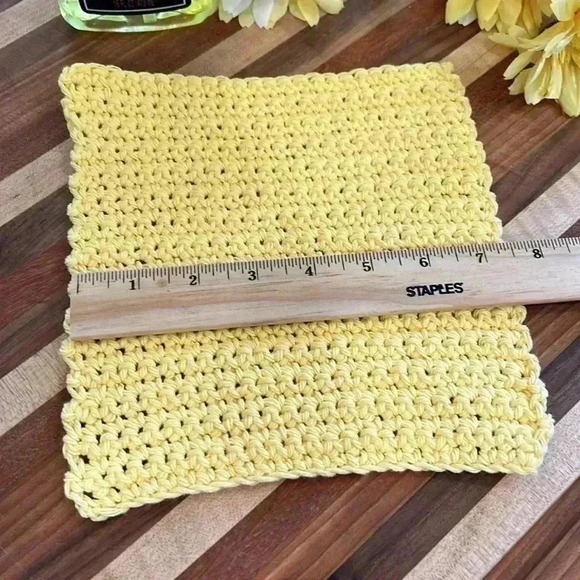 Thick, soft and cushy wash cloths are hand crocheted from 100% cotton yarn.