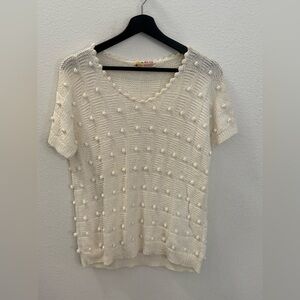 100% Cotton Handmade Elegant Cream Knit Top size L