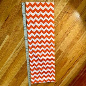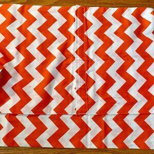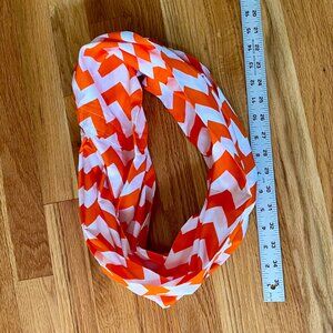 This listing is for a one-of-a-kind 100% cotton infinity style scarf. The print is a chevron with orange and white.