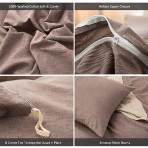 MooMee Bedding Duvet Cover Set 100% Washed Cotton Linen Like Textured Breathable Durable Soft Comfy
