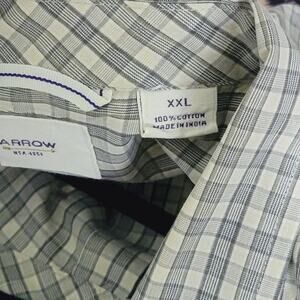 Pre-owned Arrow 100% Cotton Long Sleeve 1 pocket Cream Gray Checkered Button up Casual Collar Dress Shirt XXL