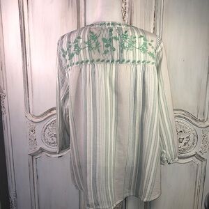 100% Cotton Long Sleeve Embroidered Tie Front Peasant Blouse Size XXL