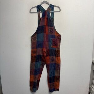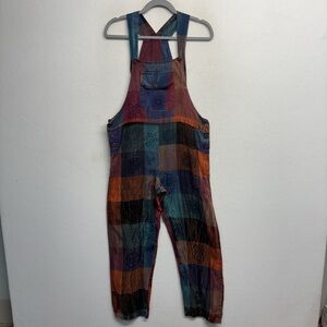 100% Cotton Nepal Overall Jumpsuit Bibs check colorful M/L Floral Boho Hippie