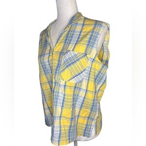 100% Cotton Plaid Button-Down Tank Large Cottagecore