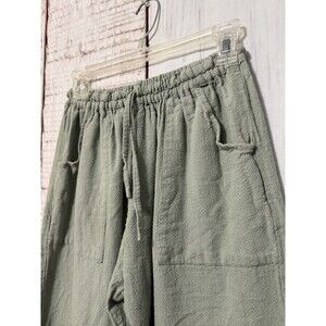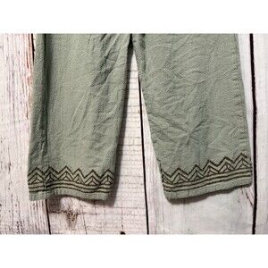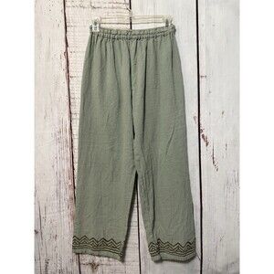 100% Cotton Pull On Casual Wide Leg Pants Aztec Green Pockets Lounge Size S/M