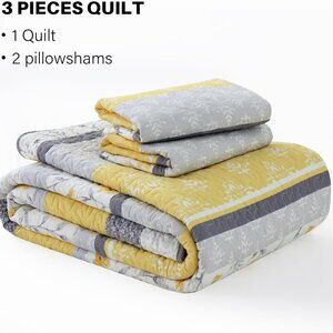 100% Cotton Quilt King/ Yellow Floral Bedding Set / 1 Quilt, 2 Pillow cases