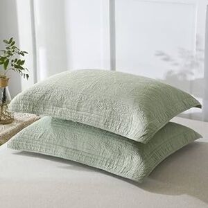 100% Cotton Quilted Pillow Sham Floral Pillow Cover King Size, Set Of 2, Green