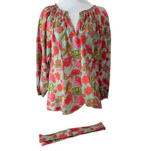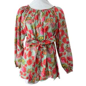 100% Cotton Soler Floral Blouse Top w Belt Made to Order $450 New Small/Medium