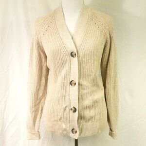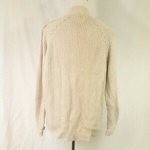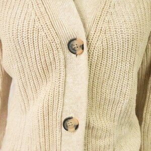 100% Cotton Sweater Cardigan with Buttons Chunky Knit Winter Medium Tan Top