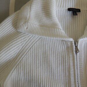 100% cotton Cardigan from Talbots. White ribbed sweater with zipper. Barely worn and in excellent condition. Size small and fits true to size.