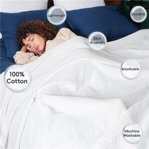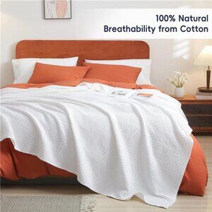 100% Cotton Waffle Weave Blanket Queen Size 90"x90"-Lightweight Cozy Washed Soft