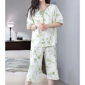 100% Cotton Women's Capri Pajama Set 2Pcs Sleepwear Capris pants Loungewear