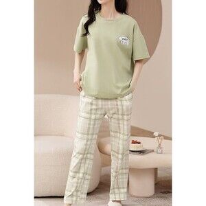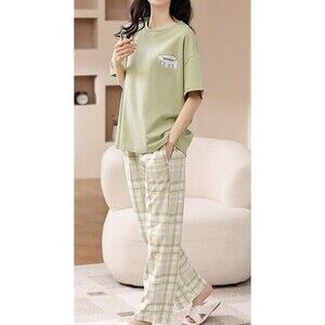 100% Cotton Women’s Pajama Set 2Pcs Short Sleeve Pullover Top Sleepwear Loungewe