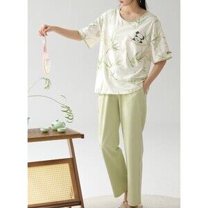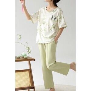 100% Cotton Women’s Pajama Set 2Pcs Short Sleeve Pullover Top Sleepwear Soft