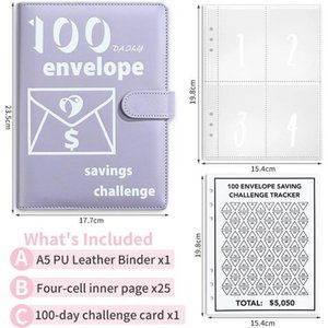 100 Envelopes Money Saving Challenge Book, PU Leather Saving Binder