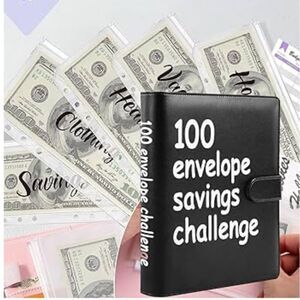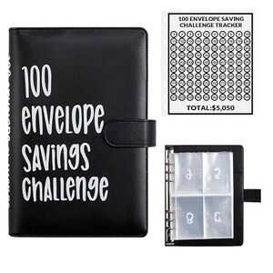 100 Envelopes Money Saving Challenge Binder, Easy And Fun Way To Save 5, 050, Budget Binder Savings Challenge Book With Cash Envelopes For Budgeting Planner Saving Money(Black, White)