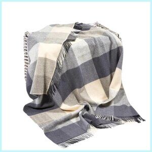 100% GENUINE Scottish Wool Blanket Import NEW WITH TAGS Block Check Herringbone