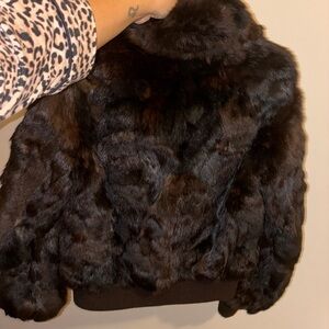 Real rabbit fur bomber style fur coat perfect for winter very warm! Size medium