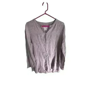 100% Irish Linen Button Up Shirt Size Medium M Sigrid Olsen Coastal Natural Casual Lavender