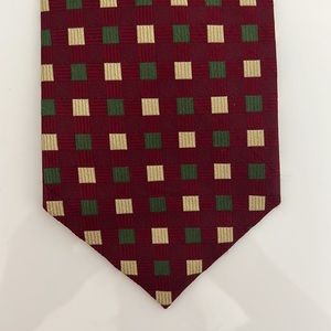 Color is a dark red with gold and green squares. Very classic look from a classic brand.