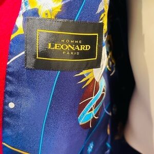 100% Kashmir Virgin Wool Red Blazer has golden buttons to match. What a blazer. This blazer is built for the cold. The Virgin Wool has a moisture wicking element to keep you dry. If you wanna stay warm during the holidays, like the Chinese New Year, Thanksgiving, Christmas this is the coat for you. All these holidays are associated with the color of red. Custom Made in Italy with a silk blue astronomical theme you can’t pass this up. This is a jaw dropping men’s blazer. Excellent Condition. L2 F