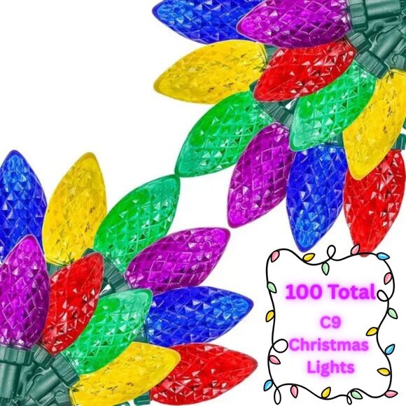 100 LED Multicolor Christmas String Lights C9 Faceted Bulb Indoor Outdoor New