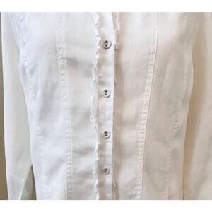 100% Linen Boho Cottagecore Ruffled Button up with Side Slit Size Large