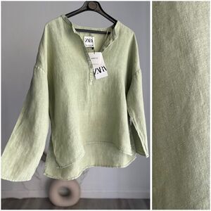 100% LINEN ZARA SLIT BLOUSE WASHED RUSTIC OVERSIZED NWT S