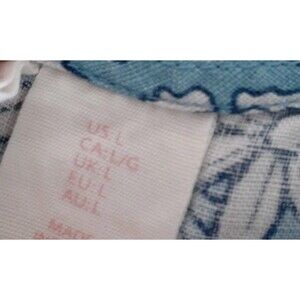 100% LINEN dress L RACHEL ASHWELL FLORAL Short Mini BLUE WHITE Large Summer 12