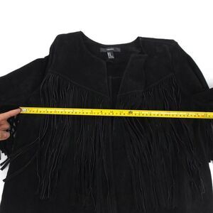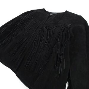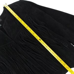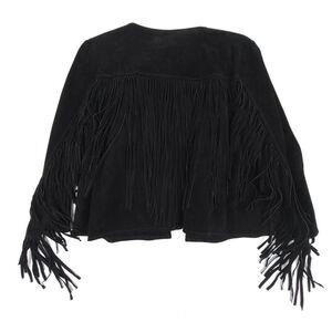 100% Leather Jacket Suede Cropped Western Boho Fringe Tassel Horse Girl Black