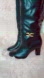 NWT Size 8 Express all black Leather Gold Buckle Chunky Heel Tall Knee High Boots ORG$ 258.00