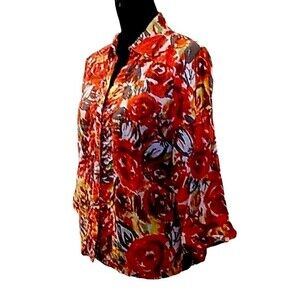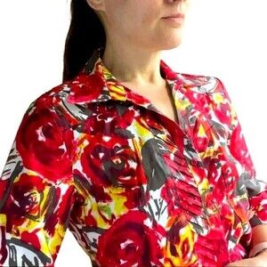 100% Linen Blouse Shirt Size Medium Richard Malcolm Floral