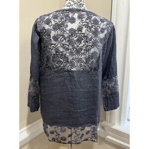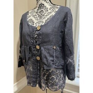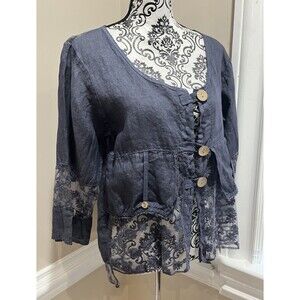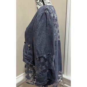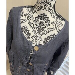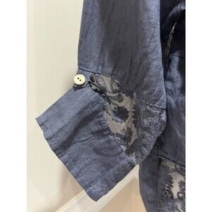 100% Linen Button Front Shacket Sz Med made in Italy Lagenlook Boho Hippie Blue