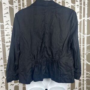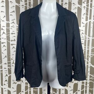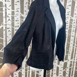 100% Linen Cropped Sleeve Open Front Blazer L Black