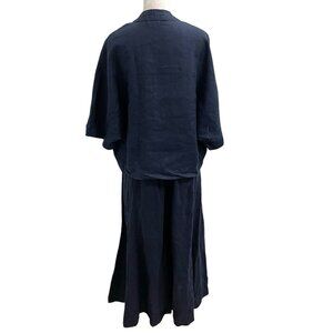 100% Linen Cropped Top Wide Leg Pants OUTFIT SET Lagenlook Navy Blue size Medium