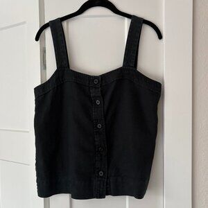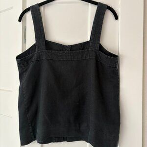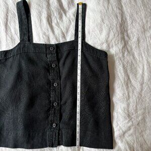 100% Linen button up tank in a perfect washed black color. In great used condition. Measurements shown in photos. I am letting go of it because it no longer fits.
