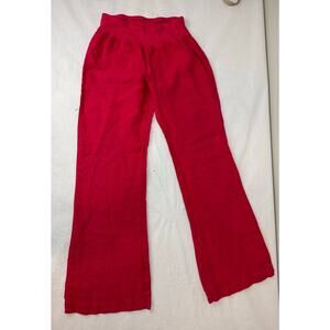 100% Linen Flared Pants Women's Mid Rise Flared Wide Leg Summer Boho Red Small