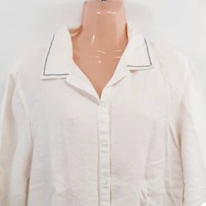100% Linen Floral Embroidered Top 2X Boho Maggie Mcnaughton